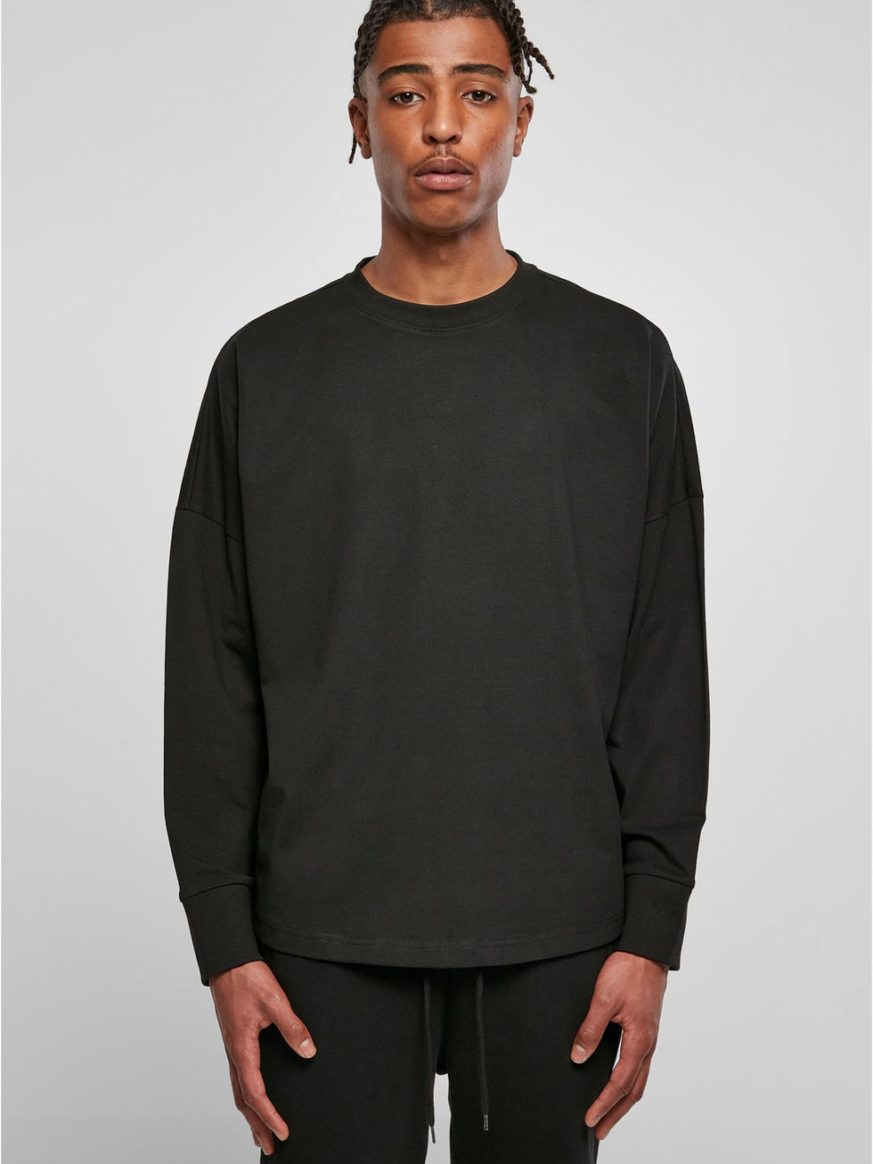 A men’s basic longsleeve for every day – the shirt is made of 100% comfy cotton and offers a slightly oversized fit, which is rounded off by a ribbed crew neck and dropped shoulders. The longsleeve can be easily refined further via silkscreening, flock printing or embroidery.